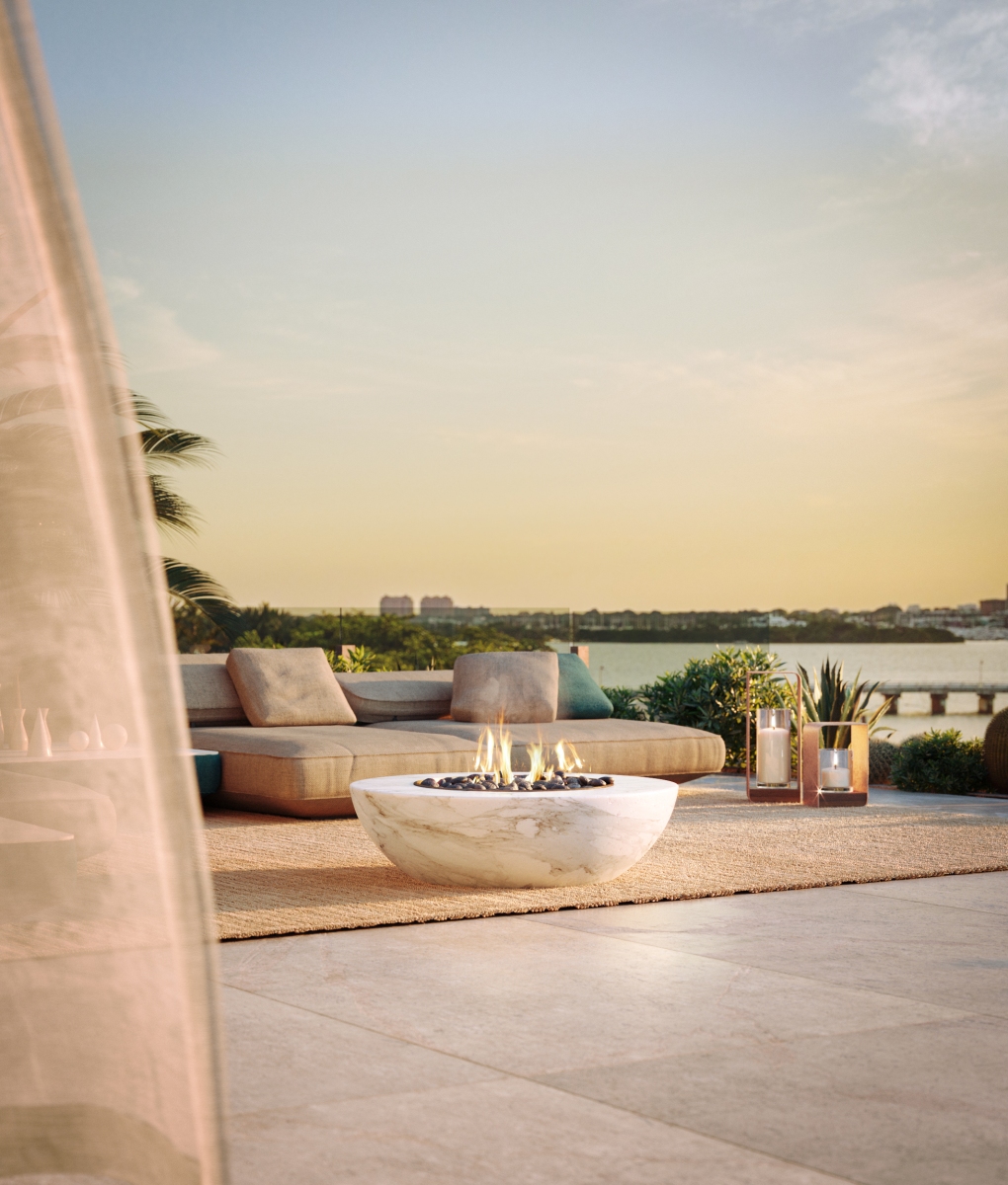 Large waterfront terraces allow for dining, lounging, and entertaining in South Florida’s remarkable climate.- — Residences feature expansive 13’-deep private waterfront terraces