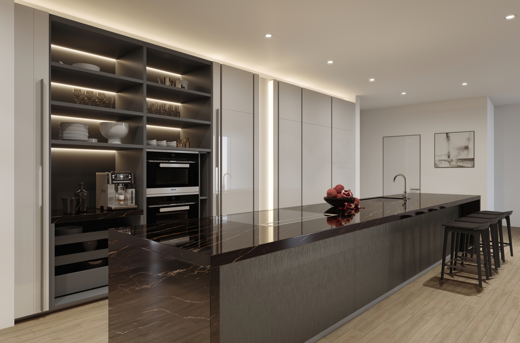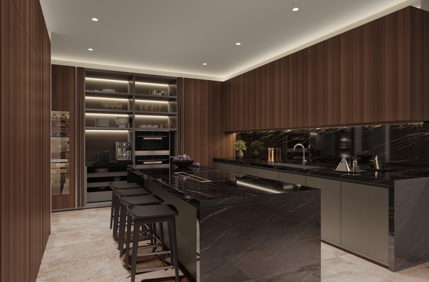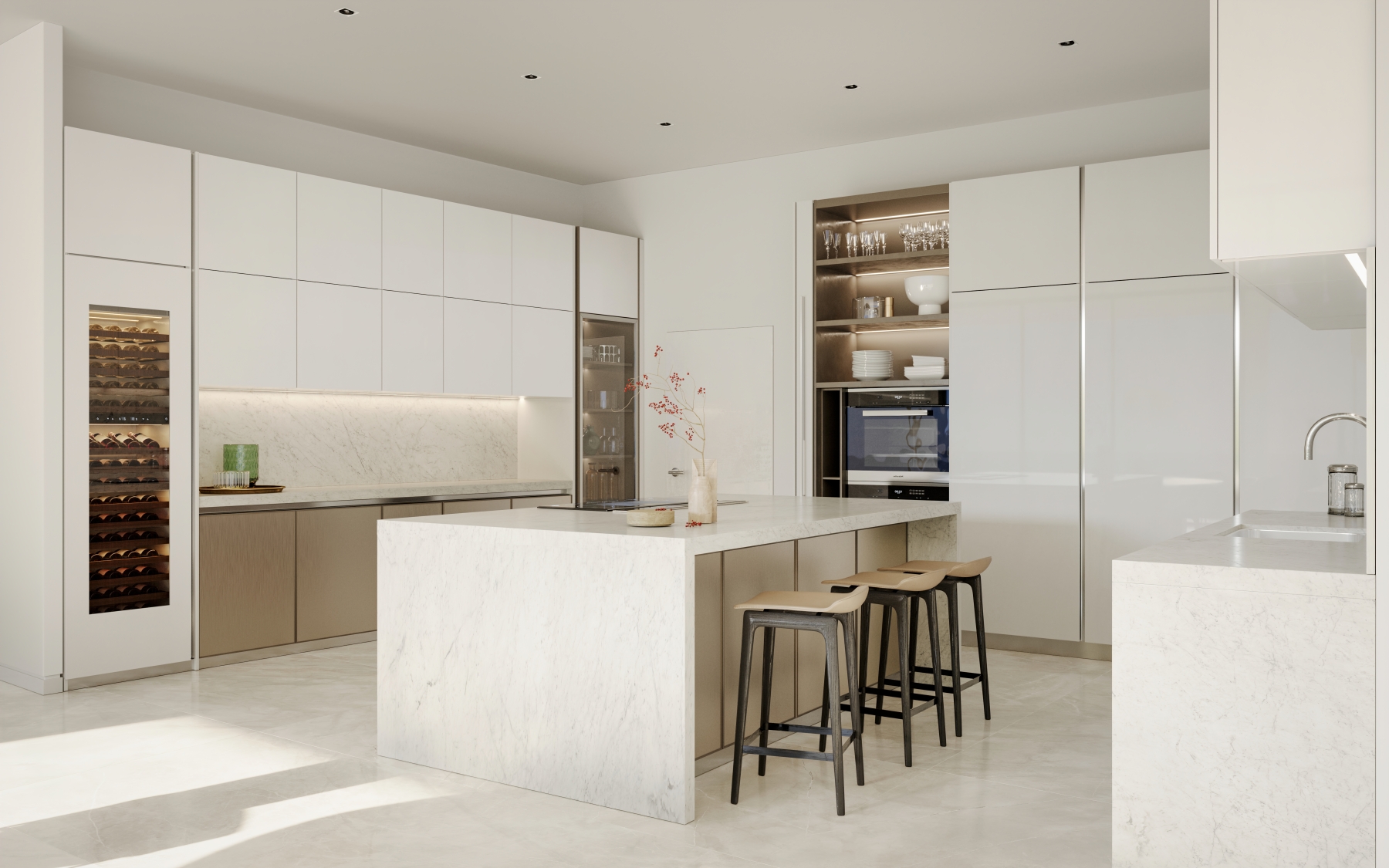 - Kitchens are designed to be elegant and functional with top-level appliances and cabinetry by Miltonic that includes built-in organizers
